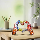 Heart Hands Sculpture Colorful Graffiti Love Gesture Ornament Art Figurines
