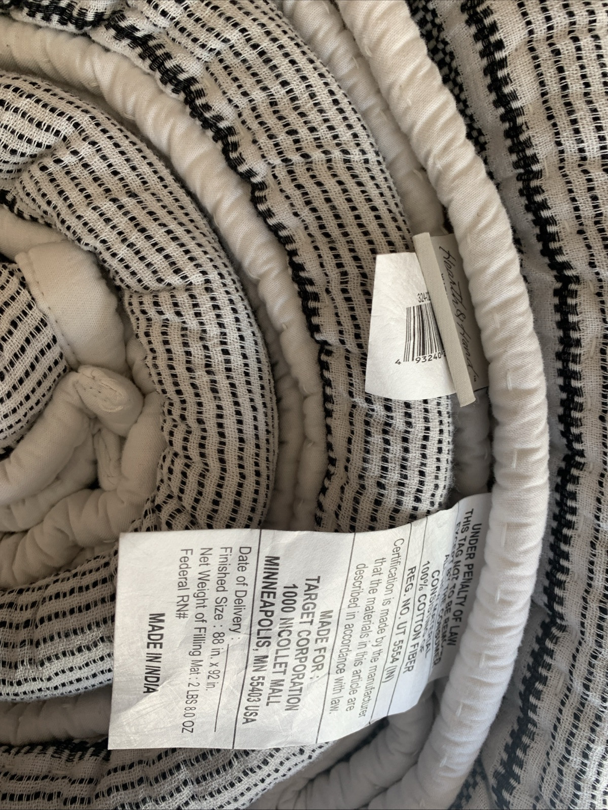 This quilt is a game-changer—soft, cozy, and stylish with a perfect blend of dark gray and cream. The textured stripes add just enough visual depth, making my bedroom feel warm and inviting. The quality is amazing for the price, and it arrived quickly. So happy with this purchase!