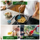 【HIGH QULAITY】: Made of food grade silicone with Non-rust Stainless Steel,BPA Free, sturdy. Unlike the nylon or wooden material easy broken, our utensils set will last long. 【HEAT RESISTANT】: No-metling any more, temperatures up to 446°F, silicone head better protect your nonstick cookware, non-scratch. 【BEST KITCHEN TOOLS】: The stainless steel kitchen utensils holder, heavy enough to stay on the kitchen counter for convenience take off the utensils. The thicker silicone spoon rest service for all utensils. Perfect as a Christmas gift. 【ONE SET FOR ALL NEEDS】: 14PCS professional kitchen utensils set including 1 Spoon Rest, 1 Untensil Holder, 1 Whisk, 1 Basting Brush, 1 Spoon Ladle, 1 Pasta Server, 1 Slooted Spaula, 1 Medium Turner Spautla, 1 Large Turner Spatula, 1 Tongs, 1 Solid Spoon, 1 Slotted Spoon, 1 Scrape Spautla, 1 Skimmer. 【EASY TO CLEAN】: Dishwasher safe, even though hand wash all is easy. Such a complete cooking utensils set is a great gift idea.