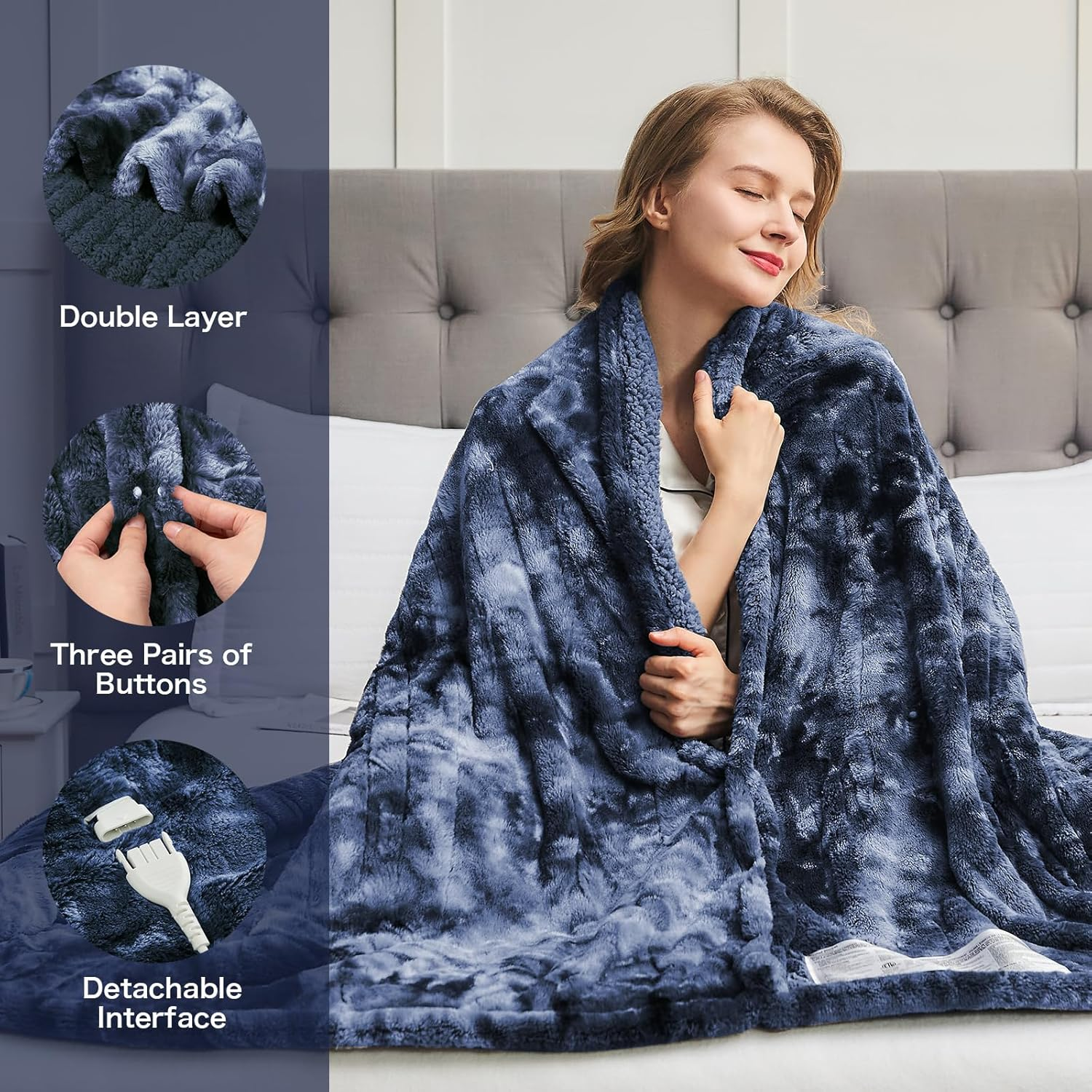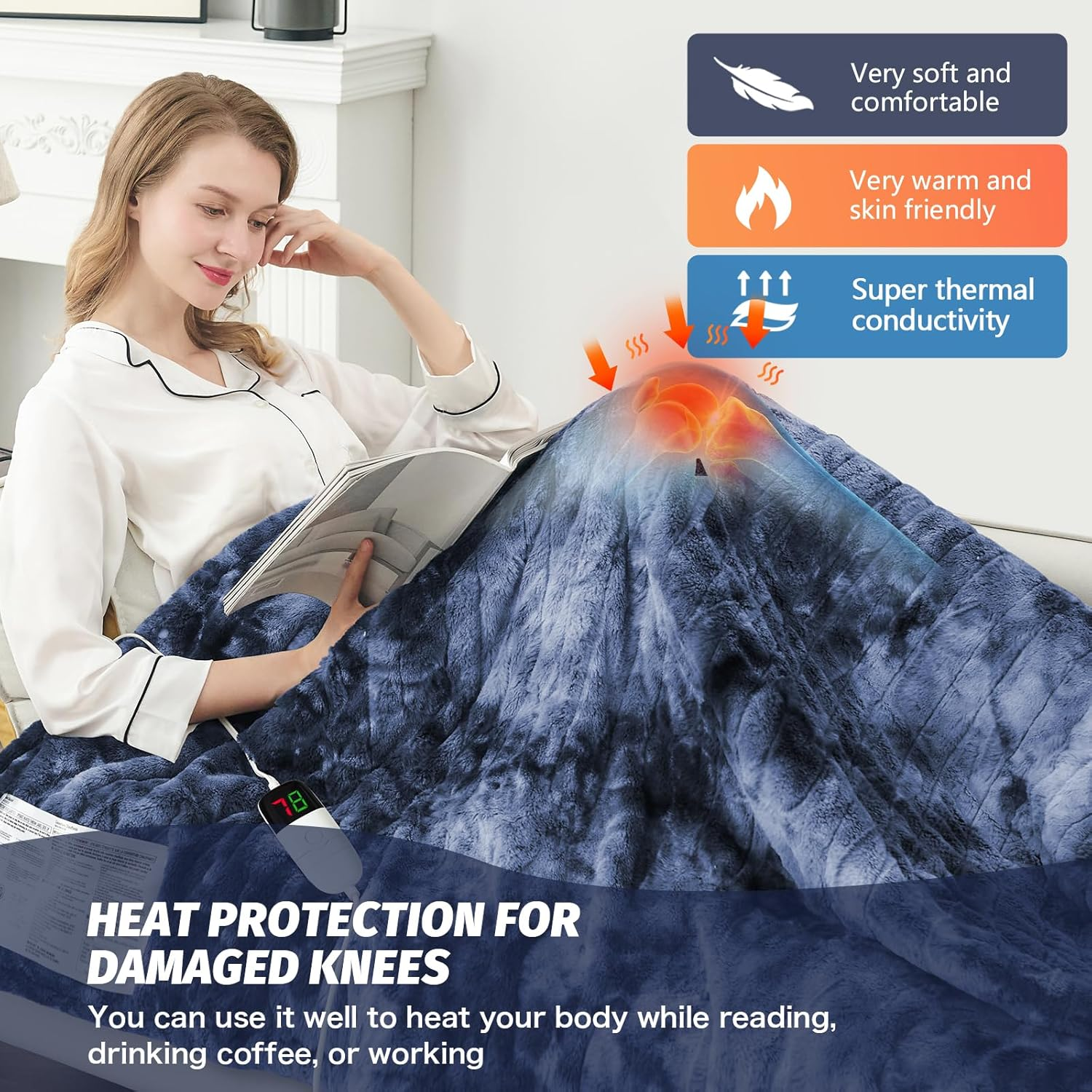 SAY GOODBYE TO THE COLD: Perhaps you bought an heating blanket to make winter cozier, congratulations, you've discovered the secret to warmth! When you have a wool extra thick electric blanket, you'll wear it while reading, place it on your lap while working(like a big heating pad), have it by your side during nap time and as you sleep, and cover yourself with it while watching TV on the couch. This would be a cool gift for father, mother and children. FOR YOUR CONSIDERATION IN SAVINGS: Do you find heating too expensive? The frigid winter forces you to pay exorbitant heating bills. But with our Octrot electric blanket, you only need to cover a fraction of the electricity cost, significantly reducing your winter expenses. Octrot electric heated blankets are as soft as rabbit fur, providing a smooth touch just as you imagine. The Fleece Sherpa on the doubles the warmth, even when there is a power outage. MULTIPLE GEAR ADJUSTMENT: If the comfortable Pictek heated blanket is the heart, Heating blankets is even more versatile than those on the market. You can flexibly choose from five different time periods for the automatic shutdown function, which are 1, 2 , 4, 6, and 8 hours. The plush fuzzy blanket will regularly shut off automatically to ensure safety and energy saving. The electric blanket has 10 temperature settings, ranging from 59 Fahrenheit to 131 Fahrenheit. ONE OBJECT FOR THREE PURPOSES: The cozy heating throw blanket is not only a heated blanket, but also a thick winter blanket, and a large heating pad. The front of the blanket is made of faux fur, and the back is made of fleece sherpa, which is already very warm under normal circumstances. Its function is the same as a heated pad, which can protect your knees, waist, neck, and various parts of the body, providing warmth for your entire body. It is your good companion to resist the harsh cold. OUR GUARANTEE: If you have any doubts about the lifespan of our heated blanket, feel free to purchase our washable electric throw blanket with confidence. Our electric blankets have been upgraded and rigorously tested, with mature technology, even heating, long usage time, and product safety and reliability. After purchasing the electric blanket, we will also provide after-sales service guarantee to ensure your consumer experience. Product Description OCTROT heated blanket Like the warm sunshine of winter embracing you OCTROT electric blanket accompanies you through the winter. Longer and denser The heating wire is longer and denser, which can quickly heat up while ensuring stability. Protect your joints 1 ETL & FCC accept 2 Blanket structure 3 Wiring diagram 4 Function 50*60, 62*84, 72*84 inches with only one controller, which controls the temperature of the blanket. 84*90 inches with 2 controllers that can individually control the temperature of half of the blanket 1 Single controller 2 Dual controllers 1 Sleeping in bed 2 Working on the sofa 3 Multi scenario use Bring warmth to winter Multi Functional Heating Blanket When you disconnect, it is also a comfortable and soft plush blanket. The front of the blanket is made of faux fur, and the back is made of fleece sherpa, which is already very warm under normal circumstances. After being powered on, in addition to heating throw blanket, it looks more like an enlarged heating pad. Its function is the same as a heated pad, which can protect your knees, waist, neck, and various parts of the body, providing warmth for your entire body. OTHER PRODUCTS Add to Cart Add to Cart Add to Cart Add to Cart Add to Cart Add to Cart Add to Cart Customer Reviews 4.3 out of 5 stars 1,208 4.3 out of 5 stars 1,208 4.3 out of 5 stars 1,208 4.3 out of 5 stars 1,208 4.3 out of 5 stars 1,208 4.3 out of 5 stars 1,208 4.3 out of 5 stars 1,208 Price $39.99 $ 39 . 99 $41.99 $ 41 . 99 $42.99 $ 42 . 99 $42.99 $ 42 . 99 $42.99 $ 42 . 99 $44.99 $ 44 . 99 $54.99 $ 54 . 99 Material Sherpa & Faux Fur Sherpa & Faux Fur Sherpa & Faux Fur Sherpa & Faux Fur Sherpa & Faux Fur Sherpa & Faux Fur Sherpa & Faux Fur Size 50*60, 62*84, 72*84, 84*90 50*60, 62*84, 72*84, 84*90 50*60, 62*84, 72*84, 84*90 50*60, 62*84, 72*84, 84*90 50*60, 62*84, 72*84, 84*90 50*60, 62*84, 72*84, 84*90 50*60 Colour Marble Grey Purple Cobalt Aqua Rose Dust Black White Temperature Range 86°F - 113°F (10 Settings) 86°F - 113°F (10 Settings) 86°F - 113°F (10 Settings) 86°F - 113°F (10 Settings) 86°F - 113°F (10 Settings) 86°F - 113°F (10 Settings) 86°F - 113°F (10 Settings) Timer Setting 1, 2, 4, 6, 8 Hours 1, 2, 4, 6, 8 Hours 1, 2, 4, 6, 8 Hours 1, 2, 4, 6, 8 Hours 1, 2, 4, 6, 8 Hours 1, 2, 4, 6, 8 Hours 1, 2, 4, 6, 8 Hours