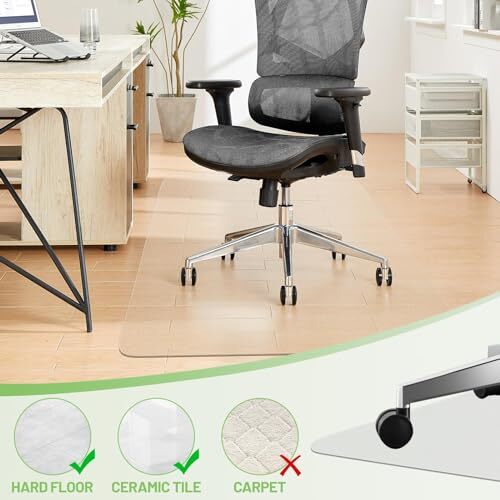 This chair mat is a game-changer for carpeted floors! The heavy-duty plastic is sturdy yet smooth, letting my chair glide effortlessly. The anti-slip bottom keeps it firmly in place, and it’s large enough to cover my workspace. No more dents or wear on my carpet—just smooth rolling and great protection. Fast delivery and a solid return policy make this a worry-free buy. Highly recommend for home or office!