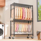 $ 4.26Heavy duty Garment Organizer Laundry Cart With Storage Basket Double Pole Rack