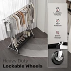 Rolling Clothes Rack for Hanging Clothes Heavy Duty Garment Rack Commercial Clothing Racks with Wheels Clothes Rack, Rolling Clothing Rack with Wood Shelves Load 500 LBS Heavy Duty Clothes Rack for Hanging Clothes Metal Garment Rack Sturdy Coat Rack for Bedroom Laundry Living Room Balcony 【500LBS Heavy-Duty Clothing Rack & Large Capacity】: Supports up to 500lbs, perfect for hanging heavy garments or even unconventional items like sandbags. Clothing rack dimension 15.72"D x 74.7"W x 70.74"H. The overall maximum load is 500lbs which is enough solid and sturdy. Flexible clothing rack offers a 2-time hanging space than ordinary clothing rack. Portable closet with Shelves with enough height meets all your needs to hang different sized clothing. 【Clothing Rack with Wood Shelves & Superior Stability】: Engineered with a triangular structure for a sturdy, wobble-free experience. Practical clothing rack is stable and durable because of wide wood laminates base, and it provides more space to put shoes, luggage, Laundry basket and box. 【360° Flexible Wheels & Convenient to Move and Lock】:The commercial grade clothing rack with wheels equipped with four 360° removable rolling solid casters (2 with lockable brake) enables hanging closet rack with shelf to be flexible moved without leaving scuff marks and scratches on the floor, 2 lockable casters keep it in place when stability is needed. Let you easily move your clothes racks anywhere while using. 【3-in-1 Commercial Clothing Rack】: HOKEEPER clothing racks on wheels is integrated by garment rack, free standing shoe racks and umbrella rack. Great for organizing your clothing in bedroom or student dormitory, or drying clothes in laundry room, also a portable closet shelves in a boutique, showroom, retail store or flea market 【Carefree After-Sales & Easy to Assemble】 : The garment racks is simple in structure with detailed manual allow you to easily assemble this rolling clothes rack. We response for every clothes rack for hanging clothes on wheels been sold. You can get 7x24 customer service for the heavy duty garment racks. Should you have any doubts or question, please feel free to contact us