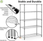 This shelving unit is a game-changer for storage! Super sturdy with its carbon steel frame, and each tier holds up to 250 lbs—perfect for heavy kitchen appliances, garage tools, or pantry goods. The open wire design keeps things visible and organized, and assembly was a breeze. Love how versatile it is—works in any room! Highly recommend for anyone needing extra storage space.