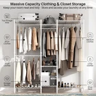 【Sturdy & Reliable】 The clothing rack for hanging clothes takes 25mm diameter high quality metal poles and hangers for true commercial-storage; and all metal parts are powder-coated which protects sturdy clothes rack from water and rust to ensure years of use. 【Dimensions: H-Shaped】 69.3'' L x 14.2'' W x 77.2"H. L-Shaped: L106cm/ 41.7"; W106cm / 41.7". Small shelf measures L36 x W36cm/ L14.2 x W14.2", large shelf measures L74 x W36cm/ L29.2" x W14.2". Easy access in bedroom, cloakroom, clothing store, laundry room, walk-in closet and more. 【Strong Bearing Capacity】 Load capacity up to 650 lbs, not easily deformed. The large shelves can hold up to 100 pounds individually and the small shelves can hold up to 50 pounds individually. It can create extra storage space instantly, and instantly organize your messy items into neat condition with little effort. 【All-in-one Multifunction Closet Rack】 3 Tiers Extra Large Garment Rack offers you various storage area to place your clothes, accessories, shoes, etc. It features 7 height adjustable shelves for extra storage capacity, 4 detachable hanging bars that easily accommodates to the length and size of your garments. 【Multi-type Installations】 This clothes rack has various Installation methods to fit your different storage needs. L shape for small spaces like corner, apartment, bedroom; Straight-lined shape for walk-in closet and cloakroom clothing store. Our wire garment rack is easy to assemble with clear instruction. Elaborate Designed High-Quality Materials and Thoughtful Details Pyramid-shaped Design Triangular design for greater stability and load 25mm Thicken Steel Pipe Threaded mounting, durable and easy to install 3-Tiers Adjustable Shelves Adjust the shelf distance and position at will Double Detachable Hanging Rods The hanging rod can be easily detached Can Meet All The Clothing Storage Needs of A Family of Several People Long Straight Edge & Corner Garment Rack Details Elaborate Designed High-Quality Materials and Thoughtful Details Pyramid-shaped Design Triangular design for greater stability and load 25mm Thicken Steel Pipe Threaded mounting, durable and easy to install 3-Tiers Adjustable Shelves Adjust the shelf distance and position at will Double Detachable Hanging Rods The hanging rod can be easily detached Can Meet All The Clothing Storage Needs of A Family of Several People Long Straight Edge & Corner Garment Rack Details On Jan 7, 2025 at 02:00:08 PST, seller added the following information: