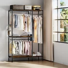 Clothes Rack, Heavy Duty Garment Rack for Clothes, Clothing Racks with Shelves and 4 Side Hooks, Freestanding Metal Wooden Closet Organizer (Rustic Brown) Product Description About this item 【 Stable and Safe Clothing Rack】 free standing wardrobe closet is very sturdy and durable with its design and material. The X-brace in the back provides additional stability, no wobbling or swaying on any floor, such as carpet. The included wall anchor strap sets protect the clothing rack from tipping over, which is safe for kids and pets. 4 adjustable leveling feet not just ensure the clothes rack remains stable at all times, but they can also protect your floor from scratches. 【Heavy Duty Garment Racks】Designed with metal structure and thickened wooden boards, this clothes rack is so durable and sturdy, they can hold up to around 400LB clothes in total, even the heaviest of garments. The heavy duty clothing rack is ideal for long-term clothes rack and wardrobe system. 【Tall Clothing Racks for large storage 】This 71 x 47.2 x 16 IN free standing closet organizer is specially designed for long skirts or coats, which can keep them wrinkle-free. With 3 hanging bars, the clothes rack can provide large storage for kinds of clothes, the top and bottom shelves bring extra spaces for travel duffle bags,luggages,shoes.4 side hooks can hang your hand-bags and others. Now Say goodbye to clutter and keep your home organized, take your clothes and go, they are all ready. 【Easy Assembly】With easy-to-follow instructions, numbered parts and accessories, hardware, you'll set it up quickly and easily, and our service team provides you within 24 hours customer services if you miss any parts or accessories. 【No Need to Wait and add-it-to-cart】 Any questions will be responded within 24 hours by our service team. Customer satisfactions is our highest pursuit. Specifications of heavy duty clothes rack with shelves. Material: wooden and metal frame Color: rustic brown Number of shelves: 3 liers ( Top,middle and bottom shelves ) Number of hanging rods: 3 Dimensions: 47.2"W x 15.7"D x 71.4"H Static recommended bearing capacity: 400LBS Is required assemble: Yes Application as: walk-in closet, clothes rack, plant rack, storage rack, your preferred possibilities. 4 Side Hooks Designed with the 4 side hooks, you can hang the bags,hats, and others you want. It is very useful for yourself or families X-bar for Stable Doubly reinforces the stability of this clothes rack, preventing any wobbling. More stable and durable. Protection adjustable feet Ensure optimal stability even on uneven floors, while protecting the floor from scratches. And adjust the height of the clothes rack you preferred to. Anti-Pulling belt safety locks to ensure safe use. Prevent the kids to pull down the clothes rack.