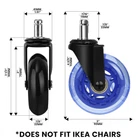 Office Chair Wheels for Carpet and Hardwood Floors Laminate Heavy Duty Casters mat Rubber Silicon Rollers Wheels Replacement Desk Chair Accessories (Blue) UPGRADE TO UNRIVALED SMOOTHNESS – Experience the ultimate in smooth, quiet gliding with our premium computer chair wheels. Perfect for any setting, these wheels offer a whisper-quiet movement, ensuring your concentration remains undisturbed. PROTECT YOUR FLOORS WITH CONFIDENCE – Say goodbye to floor damage with our rubber wheel casters. Safe for all types of floors including wood, laminate, vinyl, tile, and carpet, our office chair wheels for carpet ensure a flawless glide without leaving any marks or scratches. BUILT FOR STRENGTH, DESIGNED FOR COMFORT – Crafted for durability, these heavy-duty gaming chair wheels are the last ones you'll ever need. Their robust design supports your movements effortlessly, providing both stability and ease. EFFORTLESS INSTALLATION, INSTANT UPGRADE – Transform your chair in no time with our easy-to-install office chair rubber wheels. No tools required, just a simple setup for an instant upgrade to your seating experience. A PERFECT MATCH FOR YOUR CHAIR – Whether you're gaming, working, or simply relaxing, our versatile wheels are the ideal companion for any computer or gaming chair. Enhance your mobility and enjoy the freedom to move seamlessly in your space. COMMITMENT TO YOUR SATISFACTION – We stand behind the quality of our products. Your satisfaction is our top priority, and we are confident that you'll appreciate the difference in comfort and style. Enjoy a smoother, quieter, and more comfortable experience with our top-grade chair wheels. Transform your office or gaming chair with our premium chair wheels, designed to provide an unparalleled experience of smooth and silent gliding. Our heavy-duty, rubber wheel casters are meticulously crafted to protect all floor types, ensuring no scratches or marks whether on hardwood, laminate, or carpet. The effortless installation process means you can upgrade your chair quickly without any tools, seamlessly integrating with various chair types, including computer and gaming chairs. Our commitment to quality assures not only a robust and durable product but also a commitment to your total satisfaction, ensuring a smoother, quieter, and more comfortable experience in your office or gaming environment. Elevate your chair's functionality and style with our top-grade wheels, designed for those who value both performance and elegance in their workspace. Shipping We offer FREE shipping on all orders! We ship within Three business days of payment, usually sooner. We use a selection of shipping services such as UPS, FedEx, USPS etc. We only ship to the lower 48 states, no APO/FPO addresses or PO Boxes allowed. Local pickups and combined shipping options are not provided at this time. Return You can return a product for up to 30 days from the date you purchased it. Any product you return must be in the same condition you received it and in the original packaging. Please keep the receipt. Payment We accept payment by any of the following methods: PayPal Please pay as soon as possible after winning an auction, as that will allow us to post your item to you sooner! Feedback Customer satisfaction is very important to us. If you have any problem with your order, please contact us and we will do our best to make you satisfied. Contact Us If you have any queries, please contact us via ebay. We usually respond within 24 hours on weekdays. Please visit our eBay store to check out other items for sale! Thank you for shopping at our store.