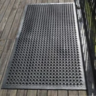 Heavy Duty Outdoor Rubber Floor Mat Anti-Slip for Garage, Restaurant, Kitchen Heavy Duty Outdoor Rubber Floor Mat - Designed to be tough and durable with drainage holes for water, snow, salt, and slush, this well-built rubber mat can be used as a restaurant mat, kitchen mat, safety mat, gym mat and even a bar mat. Durable Commercial Mat - The large mat made of high quality polyester and rubber which prevents moisture leaks while keeping the mat in place, has good grip but is not sticky which can be safe to use on vinyl , wood , tile and cement floors.Because it is made of rubber, there will be some smell at first. Easy to Clean Indoor Outdoor Rubber Mat - Simply vacuum with a hand-held vacuum, sweep with a broom, or shake off outdoors or over your garbage bin or use a garden hose to rinse the outdoor mat, keep the outdoor rubber mat fully air dry before next use. Large Heavy Duty Drainage Mat for Indoor Outdoor - Package comes with 1 large door mat - 59.06'' x 35.43''- 0.31" thick, with large hexagonal holes help to reduce the amount of slippery liquids and oils left on the floor.Grease and water-resistant rubber help keep the entrance mat in place, especially when used in high-traffic areas. Non Slip Mat Help to prevent dangerous accidents - Spend most economical money buy this best floor mat, you will never regret for your choice when you got our mat. Providing premium quality products for your home and office.Ideal for uses in bar, kitchen, restaurant, outdoor, boat, as well as warehouse or other industrial areas where moisture and heavy foot traffic are a problem. Outdoor Entrance Mat,outdoor rugs,Outdoor Mats,Rubber Mat,Rubber Floor Mat,Rubber Kitchen Mat,Anti-Slip Mat,Non-Slip Mat,Commercial Kitchen Mat,Resturant Floor Mat,Drainage Mat,Garage Floor Mat,Heavy Duty Mat For Bar, Garage, Entry, Outside, Stall, Industral, Indoor, Pool, Wet Area Use Mat,Outdoor Rubber Mats With Drainage,Heavy Duty Outdoor Mat Notes : Most of all rubber products have special smell , these are some suggestions, 1,Put your mat at a ventilated place for 3 or 5 days , Don't sunlight, the stink will be weak. 2,If your mat still has stink, please use water to clean and detergent or bleach for further lighten bad smell. Black Weight: 15.54 lbs Material: Rubber & Polyester & PVC Dimensions: (59.06 x 35.43)" / (150 x 90 )cm (L x W )
