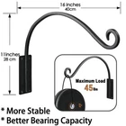Universal Plant Hanger: The 16 plant bracket can be mounted indoors or outdoors - suitable for hanging plants, bird feeders for outside, lanterns, flower baskets, plant pots, wind chimes. Perfectly decorate and beautify your home and garden. Heavy-duty Hanging Bracket: Outdoor bird feeders hanger is hand-forged from solid wrought iron- extremely sturdy and stable. The black matte powder-coated finish guarantees bird feeder bracket waterproof, rust-proof, and sun-proof. Large Plant Bracket: The curved plant bracket measures 16"L * 11" with a strong rectangular iron plate. The maximum weight capacity is to hang up to 80lbs. Wall Mounted Hook: Screw the bird feeder hook into the wall, tree, wooden fence, posts, deck columns. All required screws are included. After-sales Service: We promise our customers a worry-free purchasing experience. If there are quality problems with our plant hangers, we will provide you with satisfactory solutions in the first time.