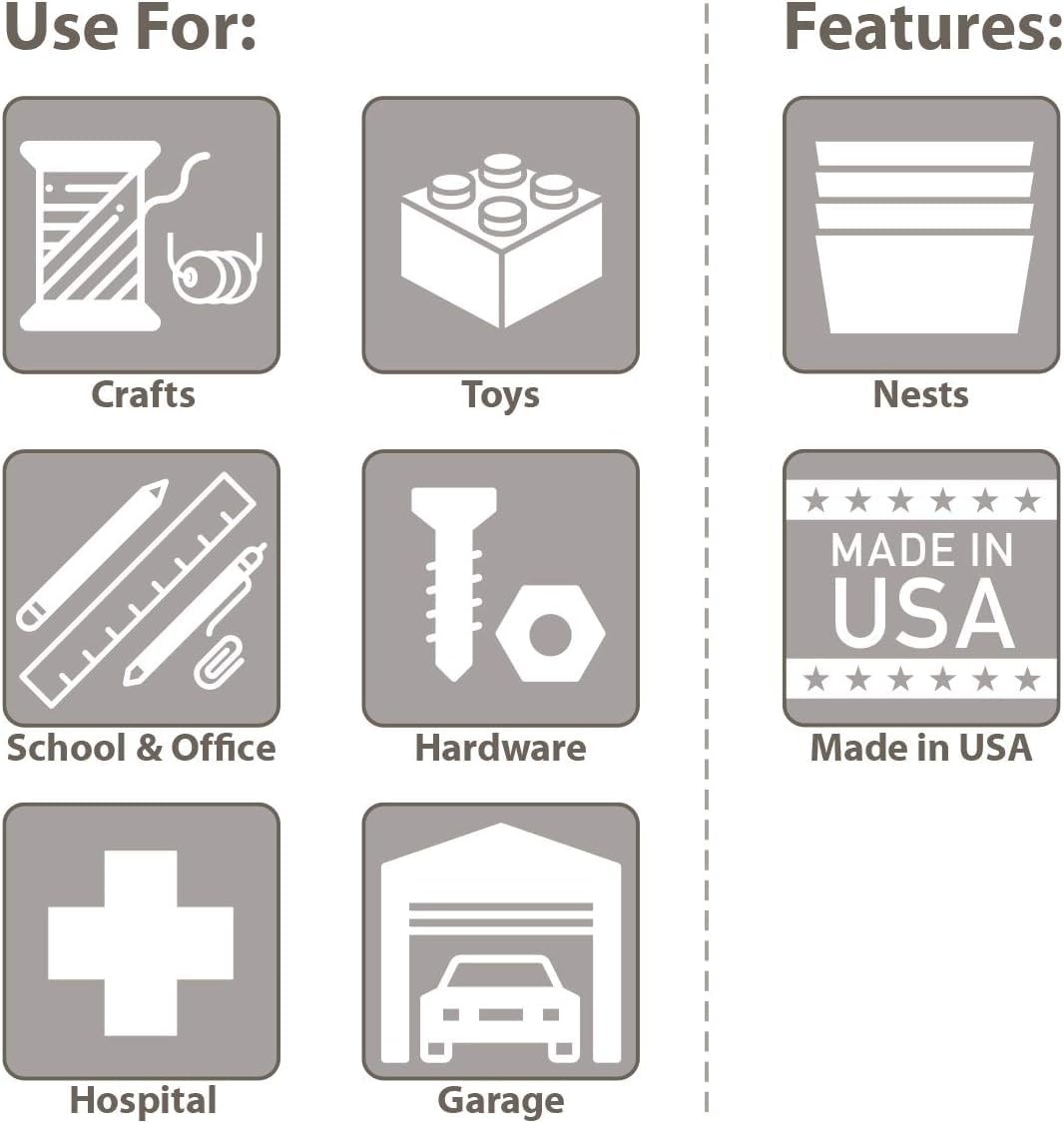 VERSATILE STORAGE CONTAINERS: Shelf Bins are great for any space; Use them on shelves, as an under sink organizer, cabinet organizer, or for garage storage; Bins fit with 12", 18", and 24" deep storage shelves, vertical storage, and pick racks DURABLE ORGANIZATION: These storage bins are made from industrial-grade polymers, offering a strong, long-lasting alternative to weak cardboard bins; Each storage bin is easy-to-clean and can be used indoors or outdoors; Shelf bins are waterproof SPILL-FREE RETRIEVAL: Lip design allows effortless forward tilting of the bin on racks, ensuring spill-free retrieval; Heavy duty plastic storage bins are great for parts storage, kitchen utensils, kitchen cabinet organization, closet storage, and more CUSTOMIZABLE SHELF ORGANIZER: Optional bin cups, dividers, and label holders (sold separately) let you tailor the heavy duty storage bins to your specific needs; Bins come in a variety of colors to color code your storage; Empty bins can be nested DIMENSIONS: Outside Dimensions - 17-7/8" x 11-1/8" x 4"; Inside Dimensions - 16-1/2" x 10" x 4"; Curved-bottom hopper front makes it easy to retrieve small parts; Weight capacity is limited to shelf weight capacity; Proudly made in the USA; Storage bins are NOT stackable