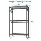 Return Policy Fast Delivery Trusted seller V12 Mini Rolling Clothes Rack Heavy Duty Clothing Rack for Hanging Clothes Adjustable Metal Wire Shelving Portable Closet with Wheels Side Hooks, Freestanding Closet Wardrobe, Black Product Description DIMENSIONS: 29.5"Lx16.5"Wx76.8"H (Overall with wheels). Weight Capacity: Total 330lbs (when not moving), 220lbs (when moving). LOCKABLE 360° WHEELS: Equipped with 4 rolling wheels, 2 of them are locking wheels, designed to allow you to roll this clothing garment rack w ever you need in home. ADJUSTABLE SHELVES: 3 Tiers clothes racks, 2 hanging rods and 2 sets of side hooks offers you various storage area. The shelves can be adjusted up and down for your needs to store difference sized items. Easily maximize your storage space by providing shoes storage, hang storage, folded storage. STURDY & RELIABLE: Made of high quality iron pipe, and powder-coated to protect it from water and rust, makes it stable, sturdy and reliable. Fit for bedroom, cloakroom, clothing store, laundry room, studio, sewing area, walk-in closet and more. EASY TO ASSEMBLE: Just be sure to read the assembly directions carefully BEFORE you start putting it together. Certain shelves must be installed in a particular order. Except for the manual, you can also refer to the installation video on the page. Shipping Returns Payment Shipping Shipping is FREE to all addresses other than APO/PO boxes in the lower 48 states. All our stock ships from US-based warehouses. Shipped via USPS or UPS (depending on location and package weight) Unless stated otherwise, all orders will ship within 24-72 hours of your payment being processed. Check our feedback to see the great reviews of FAST shipping we offer. Returns Seller does not accept returns Payment We currently accept payment via eBay managed payments only. Once payment is cleared, we will dispatch your shipment within 1-3 business days. Please refer to the "Shipping" tab for more information regarding shipping speed to your destination.