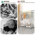 This clothes rack is a game-changer for storage! The double hanging rods provide tons of space, and the adjustable width fits anywhere. The wheels make moving it super easy, and the sturdy build holds all my clothes without wobbling. Perfect for any room—keeps everything organized and looks sleek!