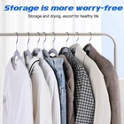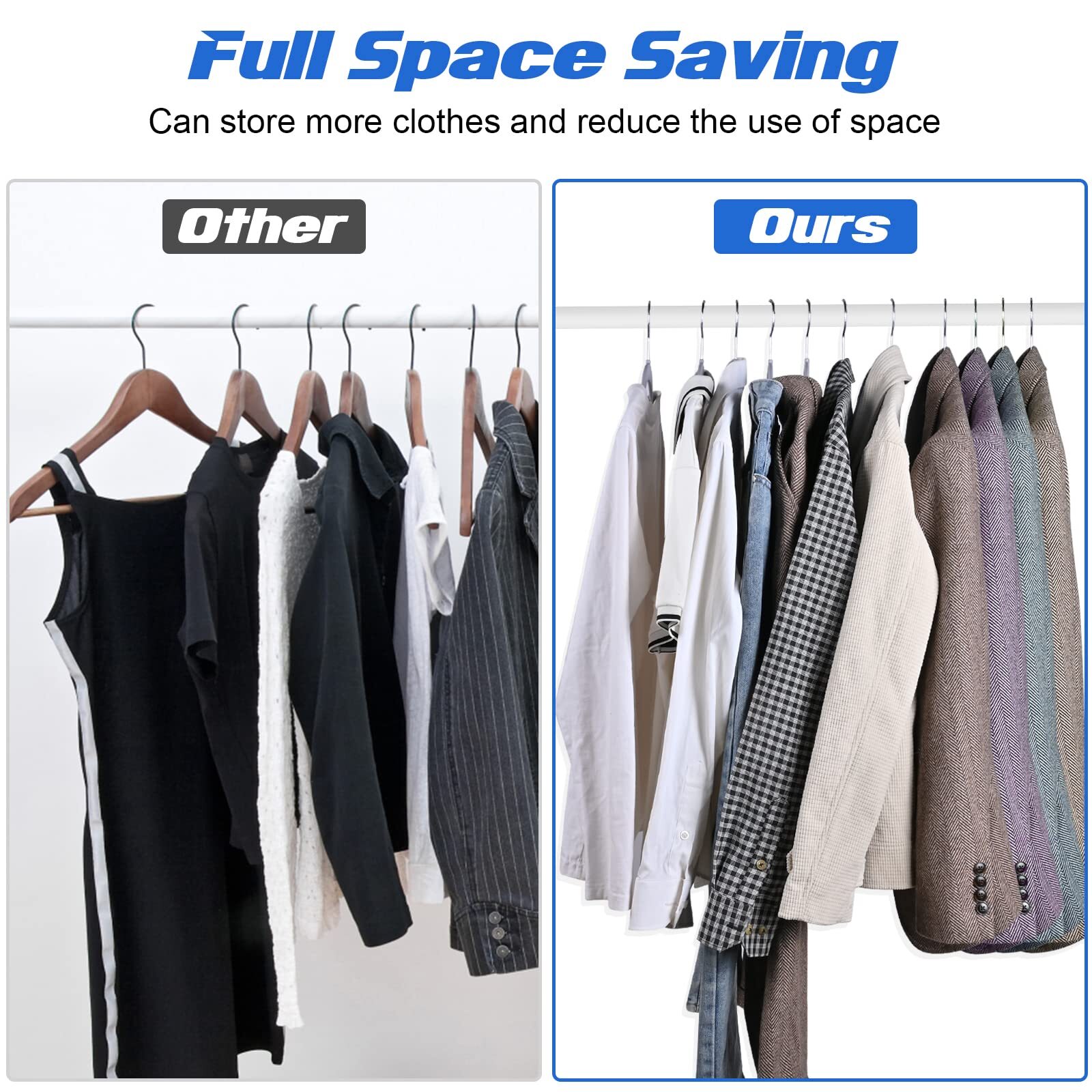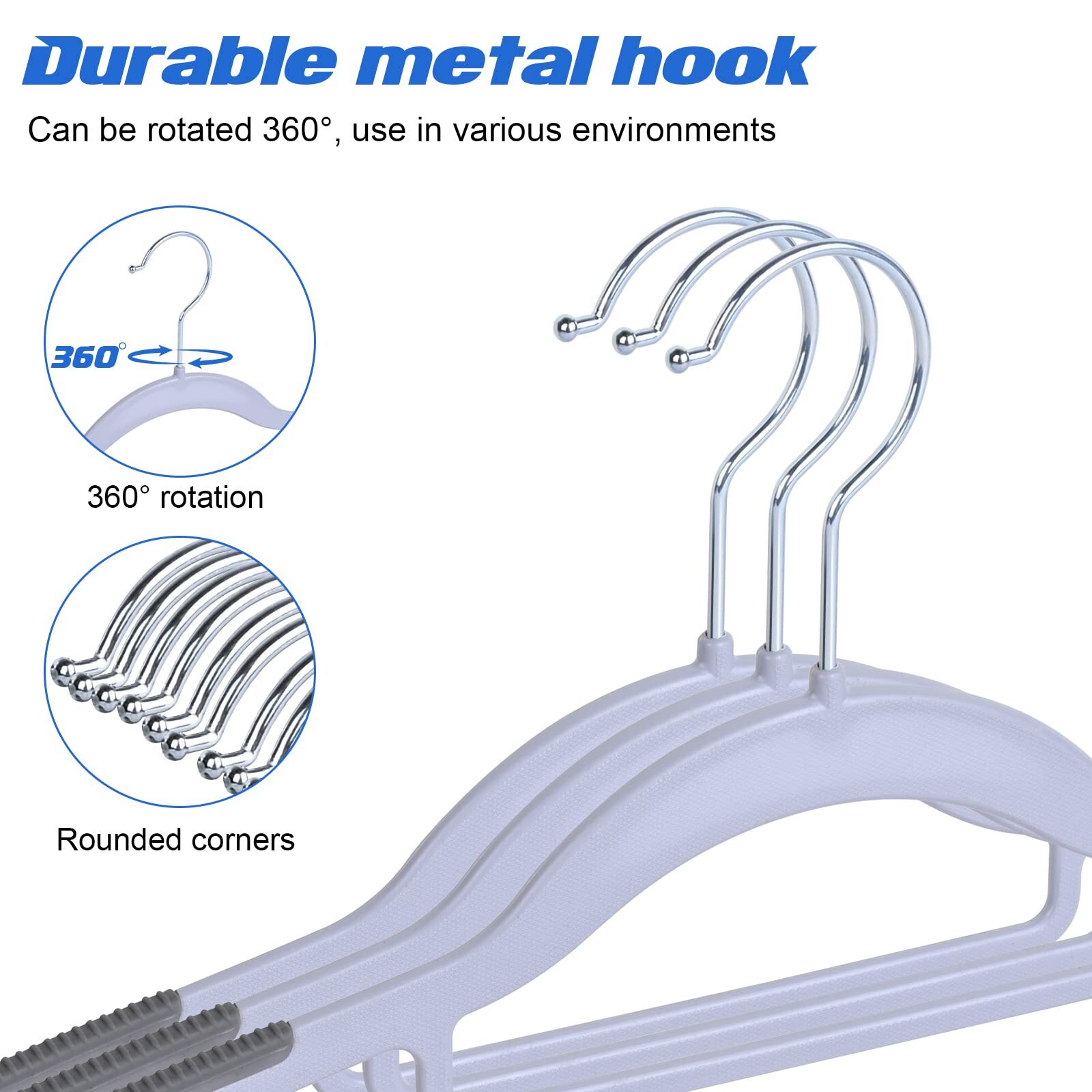 Non-Slip: Our hangers has plastic TPR on the shoulders, TPR material has good elasticity and tactility as well as wear resistance; The special construction creates excellent slip resistance to prevent your clothes from slipping 360° Rotating Hook: The rotating hanger,The angle can be changed according to different hanging places, which will make your hanging flexible; The metal hook increases the stability of the hanger, durable and tough, which is not easy to bend Dry and Wet Using: Used for dry clothing storage and wet clothes drying, suitable for indoor and outdoor use, and it can hang various types of clothing Versatile Storage: Built with lateral hooks and accessory bar, great for hanging dresses and other suspender clothing as well as tie belts and shawls Size and Pack: 50 pack non slip hangers; Each hanger measures 16.3"W x 8.26"H, excellent size design, the maximum extent of saving wardrobe space, very good for adult clothing storage