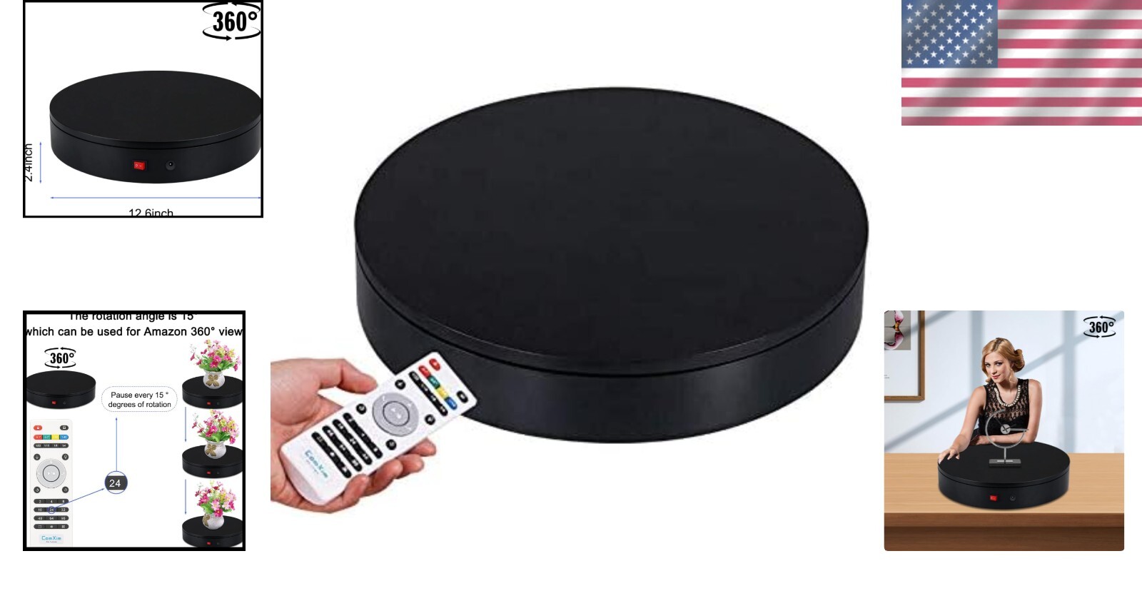Premium 360-Degree Motorized Rotating Display Stand - 200lb Capacity with Remote ‹ › ‹ › ‹ › ‹ › ‹ › ‹ › ‹ › ‹ › ‹ › ‹ › ‹ › Premium 360-Degree Motorized Rotating Display Stand Elevate Your Display Experience Transform your product presentations with our Premium 360-Degree Motorized Rotating Display Stand, designed to showcase your items with style and sophistication. Features: Convenient Remote Control: Experience cutting-edge convenience with an advanced infrared remote control, allowing contactless rotation from up to 5 meters away. Three Rotation Modes: Choose from continuous rotation, intermittent rotation, and angle-specific stops, all easily adjustable at the touch of a button. Adjustable Speed: Tailor the rotation speed between 27 to 72 seconds, allowing for both fast showcases and slow reveals for intricate details. Robust Load Capacity: This display stand can bear weights between 88 to 200 pounds, ensuring that your heaviest products are supported securely. High-Quality Materials: Crafted from premium raw materials with a frosted tabletop and anti-slip foot pads, providing stability and elegance. Versatile Applications: Perfect for product demonstrations and exhibitions Ideal for 3D scanning, video shooting, and photography sessions Enhance the presentation of cosmetics, arts, crafts, and antiques What You Get: 12.6 inch rotating display turntable 59 inch power cable (150 cm) 31-key multifunctional remote control (batteries not included) User guide and dedicated customer support Why Choose Our Premium Rotating Display Stand? Step into a new era of showcasing your products with unmatched versatility and elegance. Our Premium 360-Degree Motorized Rotating Display Stand not only enhances visibility but also elevates the overall aesthetic appeal of your displays. Whether for a professional exhibition, an online shop, or simply to impress, choose our display stand and captivate your audience effortlessly. Don’t miss out on transforming your presentations—order now and take your displays to the next level! Shipping Free & Fast Shipping - We offer free shipping to most of the USA with a normal delivery time of 3-10 businessdays. However, due to various situations, additional delivery time (up to 3 weeks) may be required for some items. Alternative Carriers - We may use alternative carriers (e.g. USPS, FedEx, UPS, etc.) to ensure your package arrives safely and on time. Due to the use of multiple carriers, we are unable to provide a tracking number automatically. Handling Time - Orders are processed and shipped within 1-5 business days of receiving cleared payment. Shipping Restrictions - Shipping to Alaska, Hawaii, Puerto Rico, Guam, and other US territories may incur shipping charges or delivery restrictions. Please contact us before ordering, or your order can be refunded/cancelled. State Restrictions - There may be restrictions based on your state of purchase. For example, certain items may not be shipped to California due to state regulations. Contact for Tracking Updates - If you require tracking updates or have any concerns about the delivery of your order, please feel free to contact us, and we will be happy to assist you. Return Please see our ebay return policy. We do not accept return on most products. This is to avoid customers mis-using ebay returns. All sales are final. Please be sure to check the return policy listed at the top of the listing. In rare cases, we may accept returns, if the buyer pays both ways shipping and 20% restocking fee. If you are un-sure of return policy of a particular item, please ask before buying. Payment We accept all major credit cards, PayPal, and Apple Pay for your convenience. Your payment information is secure and encrypted to ensure a safe and seamless transaction. Please complete your payment within 3 days of purchase to avoid any delays in shipping. Feedback Your feedback is extremely important to us. We strive to provide the best products and customer service possible. If you are satisfied with your purchase, please take a moment to leave us a positive review. If you have any concerns or issues with your order, please contact us before leaving negative feedback. We are committed to resolving any problems and ensuring your satisfaction. Contact Us If you have any questions or concerns, please feel free to reach out to our customer support team. You can contact us through the eBay messaging system. We are available Monday to Friday, 9:00 am to 5:00 pm EST, and we will do our best to respond to your inquiry within 24 hours. Buy it now and enjoy a pleasant shopping experience! UPC: Not Set Unit Quantity: 3.86 lb Items Included: Display Stand,ComXim 12.6 inch turntable,59 inch power cable,user guide Suitable For: Anklet,Body Jewelry,Bracelet,Cufflinks,Earring,Necklace,Ring,Photography,Product Display,Cosmetics Display,Arts and Crafts Display,Antique Display Material: Plastic Theme: Not Set Features: Charger Included,Filling Included,Jewelry Pouch Included,LED Light,Lined,Mirror,Musical,Padded,Rotating,Stackable,Wall Mounted,Zip-Around,Motorized,Remote Control,Adjustable Speed,Angle Control,Three Rotation Modes,Anti-slip Foot Pads Brand: Unbranded Type: Display Stand Color: Black Lining Material: Unlined Shape: Round Department: Unisex Adults Country/Region of Manufacture: Not Set Capacity: 200 Pounds Item Depth: 12.6 in Item Length: Not Set Item Width: Not Set MPN: Not Set Unit Type: lb Vintage: Not Set Handmade: Not Set Personalize: Not Set Customized: Not Set