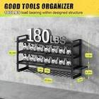 Power Tool Wall Mount - 180Lbs Load 4 Layers Storage Rack with 8 Drill Holders for Drills Cordless Tools. Heavy Duty Iron Garage Tool Storage for Workshop Shed Pegboard Basement 180 lbs Load: The 4 tier tool organizer wall mount is made of heavy compact steel metal for greater weight capacity and durability. After load-bearing testing, the utility racks can support up to 180 pounds on sturdy walls. Easy to Install: Our power tool organizer wall mount includes all necessary mounting hardware and clear instructions for easy installation. refer to the professional installation manual, you can assemble a perfect tool rack wall mount in just a few minutes. Heavy Duty Steel Construction: The power tool organizer is constructed from a high quality powder-coated alloy steel, Its sleek black finish prevents scratching, that is rust-resistant, corrosion-resistant, and scratch-resistant. Versatile Tool Storage: The tool storage can turn your tool messy workbench or wasted wall space into a tidy and efficient workplace, keep all of your power & hand tools in one central location so you can easily find them. Extra side slots and hooks allow you to organize more things. Gift for all Occasions: The tool organizer wall mount can be hung in the garage, tool room, workshop, etc. If you're looking for a Father's Day, Christmas or birthday gift, our electric tool holder is a great choice and tailored for men, husbands, or for dad who wants nothing. Birthday Gifts for Men. Power Tool Organizer Wall Mount The video showcases the product in video guides you through product video compares multiple video shows the product being unpacked.