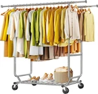 Product Description About this item 【Heavy Duty Clothes Rack】Our clothing racks for hanging clothes are made of heavy duty steel with chrome finish. 25mm thick metal with coating, which makes this clothing rack much thicker and sturdier. With a maximum load capacity of 441 lbs, it remains rigid and stable — outperforming ordinary rolling racks without bending or wobbling. 【Adjustable and Extendable Clothing Rack】Designed with adjustable metal tubes, this clothes rack can be extended from 51.5" to 75.5" in width and adjusted to three different heights: 58.5", 63.5", and 68.5". Offering significantly more hanging space than traditional racks, it's an efficient, space-saving solution for homes and retail environments. 【Dual Rod & Extra Storage】The dual-rod layout provides double the hanging capacity without taking up extra floor space. Its sturdy structure remains stable under heavy loads, ensuring worry-free use. With a 22-inch spacing between rods, you never have to worry about two rows of clothes touching or overlapping. Completing the design is an integrated shelf with a 300 lbs weight capacity — ideal for storing shoes, bins, or travel luggage to maximize your space efficiently. 【Multifunctional Rolling Clothing Rack】Easy to assemble and disassemble with the included tools, this portable clothes rack is ideal for bedrooms, closets, storage rooms, or retail use. Use it to hang clothes, store shoes, or organize luggage — ideal for guests or as a spare closet solution. Thanks to the smooth-rolling wheels, it’s easy to move around. When not in use, simply fold and store under your bed or in a small space. 【Easy to Move】Raybee commercial garment racks equipped with four 360° removable rolling solid casters (2 with lockable brake) . The wheels move smoothly on any floor surface, leaving no scuff marks, whether the rack is loaded or empty. Ideal for both home and commercial use, it can be easily repositioned or stored when not in use. 【Tool-free Assembly 】Assemble your heavy-duty clothes rack in minutes — no tools or hardware needed. With a simple, intuitive design and clear instructions, setup is fast and hassle-free. If you need assistance, we provide support to help you every step of the way. Double Roads Heavy Duty Clothes Rack Applicable in Business Settings What is the overall size of the clothing rack ? 22"D x 76"W x 69"H. What is weight capacity of this clothes rack ? Max Load 441 LBS. Is the height and width adjustable? Yes, this clothing rack can be adjusted in both length and width according to your preferences. On Aug 6, 2025 at 21:08:14 PDT, seller added the following information: