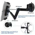 【Super Suction Cup Base】:Nano strong suction cup base diameter is 4.33 inch / 11cm,slightly larger than ordinary commercial suction cup,silicone material can be washed repeatedly,the same adhesion after washing,VACUUM mechanism powerful attractive dosen't weaken with long-lasting usage,expecially designed to commerical vehicle's dashboard and windshield, stick on the smooth of surfaces tightly,good heat resistance,it can nomally work s even if under hot days. 【3 Foldable Adjustment Long Arms】:Tablet stand are composed of 3 arms and a ball head joint,made of stable and durable environmentally friendly material,each arm has a locking knob,it can fold or strench them by twisting knob,easy to adjust the length of arm according to your demands and preferences,in addition,the ball head joint of arm allows tablet clamp to 360 °rotation freedom,it's convenient to capture the best vision for drivers. 【Stable &Security】:With high-density silicone material and anti slip rubber pads,tablet bracket doesn't fall off during vehicle is driving on the potholes,mud,bumpy,uneven,sharp turning,accelerating roads.Protecting your device security to avoid damaging,ideal for seting up on heavy vehicle dashboard or windshield:(flat truck,box truck,warehouse truck,tank truck,dump truck,vans,off-road vehicles,buses,excavators). 【Easy Install & Uninstall】:Release switch key on the suction cup base,stick it the place where you want (making sure surface are clean and tidy),then lock switch key to fix.Install tablet clamp on the ball head joint and lock the locking ring,operation is easy.You need release switch key on suction cup base if you remove tablet holder,without any marks left on the surface. 【Universal】:Tablet case thickness is less than 0.59 inch /1.5 cm and compatible with 4.7~12.9 inch Fire HD,e-Reader,iPad Air 1/2/3/4/5/6,iPad mini 2/3/4/5/6/7.9/8.3,iPad Pro 9.3/10.5/11,iPad2019/2020/2021/2022,iPad 2/3/4/5/6/7/8/9/10th Generation,Google Nexus 7/8/9/10/11,LG G Pads/7.0/8.0/ 8.3,Switch,also fit for 4.7~7.5"smartphone(iPhone/Nexus/HTC).