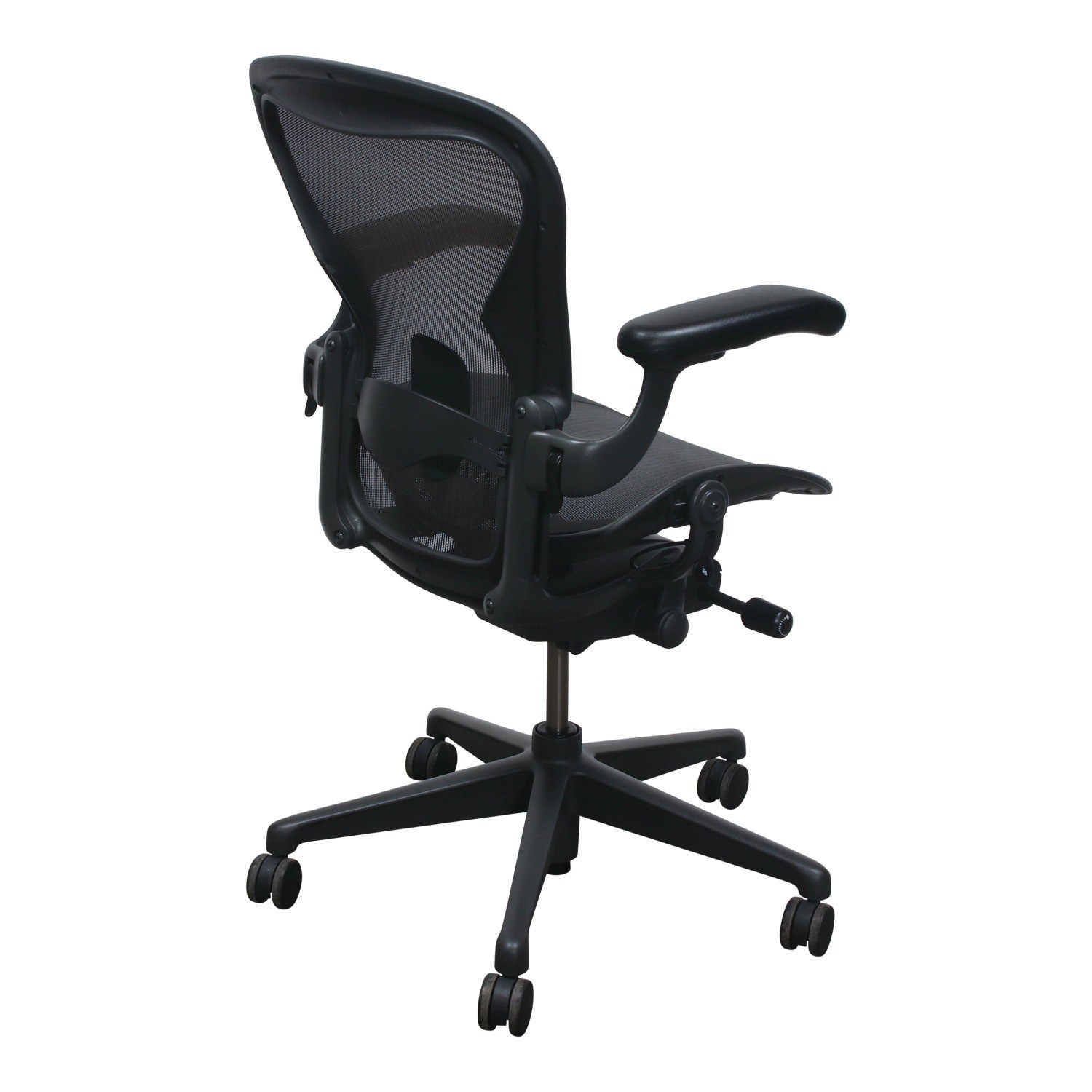 Herman Miller Aeron Remastered V2 Chair Size C - Adjustable Lumbar Support Experience industry‑leading ergonomic performance with the Herman Miller Aeron Remastered V2 Size C Task Chair, engineered for long‑term comfort, breathability, and responsive support. This upgraded Remastered version features advanced materials, refined adjustments, and the iconic Graphite frame, chassis, and base for maximum durability and a timeless aesthetic. The 8Z Pellicle® suspension seat and back provide zoned pressure distribution, superior airflow, and adaptive support that moves naturally with your body. Combined with adjustable arms, tilt limiter, seat height control, and lumbar support, this chair delivers a tailored ergonomic experience for a wide range of users. Highly Adjustable Design This chair includes: Size C Frame – largest Aeron size, ideal for taller or broader users 8Z Pellicle® Mesh – zoned mesh with balanced tension and high breathability Tilt Limiter – set recline resistance and restrict recline range Height‑Adjustable + Pivot Arms – arms move vertically and pivot inward/outward Non‑Upholstered Arm Pads – durable black pads built for long‑term wear Adjustable Lumbar Support – targeted lower‑back support with height adjustment Graphite Frame, Chassis & Base – signature Aeron colorway with high‑durability finish 2.5″ Hard Casters – designed for carpeted floors with smooth rolling Adjustable Seat Height Range – wide ergonomic height span for most desks Whether for focused work or all‑day use, this chair adapts effortlessly to you. Excellent Used Condition – Professionally Refurbished Each chair undergoes strict quality inspection and cleaning prior to shipment. Every feature is tested and guaranteed to function as intended. Chairs are professionally refurbished with fresh paint touch‑ups if needed. No rips or tears in the mesh Frame damage‑free (may have minimal surface marks) Arrives clean, fully functional, and ready to use Specifications Brand: Herman Miller Model: Aeron Remastered V2 – Size C Color: Graphite (23103) Frame: Graphite frame, chassis, and base Condition: Used – Refurbished, Very Good Features: Size C Frame, 8Z Pellicle® Mesh, Tilt Limiter, Height‑Adjustable + Pivot Arms, Non‑Upholstered Arm Pads, Adjustable Lumbar Support, 2.5″ Hard Casters, Adjustable Seat Height Range Perfect For Home offices and professional workspaces Executive desks and creative studios Anyone seeking ergonomic support and iconic design Free Shipping | Professionally Cleaned | Guaranteed Functionality Backed by a 10‑year warranty for manufacturing defects. Just contact us with your order number and photos — we’ll make it right. Shipping & Returns Handling: Note: The handling time for this chair is 5 days. Delivery: 2-7 business days depending on location. Tracking: Provided once shipped. Returns: Free returns for defective or incorrect items (within 30 days). Partial refunds available for minor issues or buyer's preference. Buyer covers return shipping unless item is defective. Contact us first - we resolve issues quickly and fairly. About Us At Comfice , we believe comfort fuels productivity. Based in the USA, we specialize in workspace comfort solutions designed to support your body and your workflow. With free shipping, responsive support, and a dedication to your satisfaction, we're here to make your workspace better - one seat at a time.