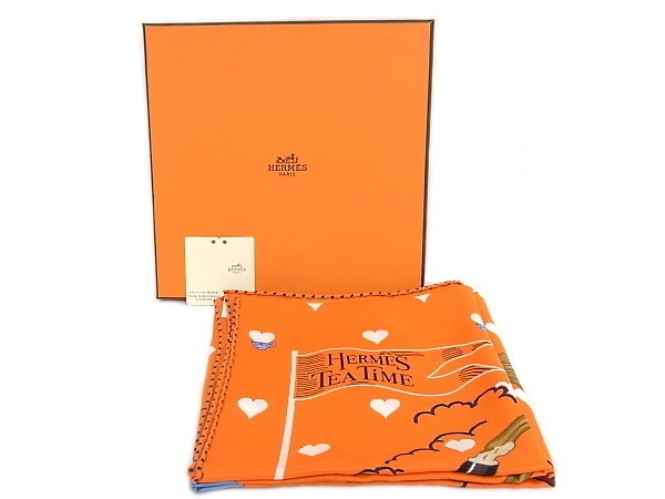 Hermes Scarf 100% Silk Carre 65 heart horse tea time orange 560811