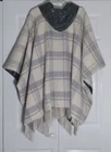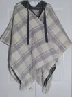 Herno Resort Warmy & Nylon Wool Blend Poncho Hooded Plaid Gray & White Fringed