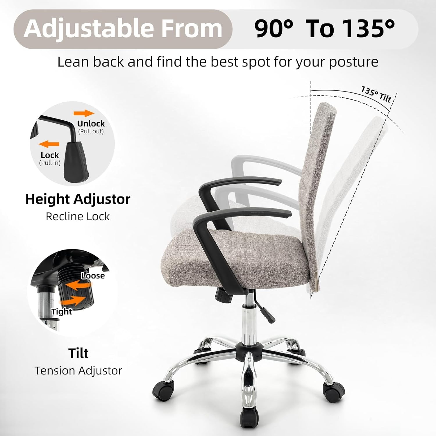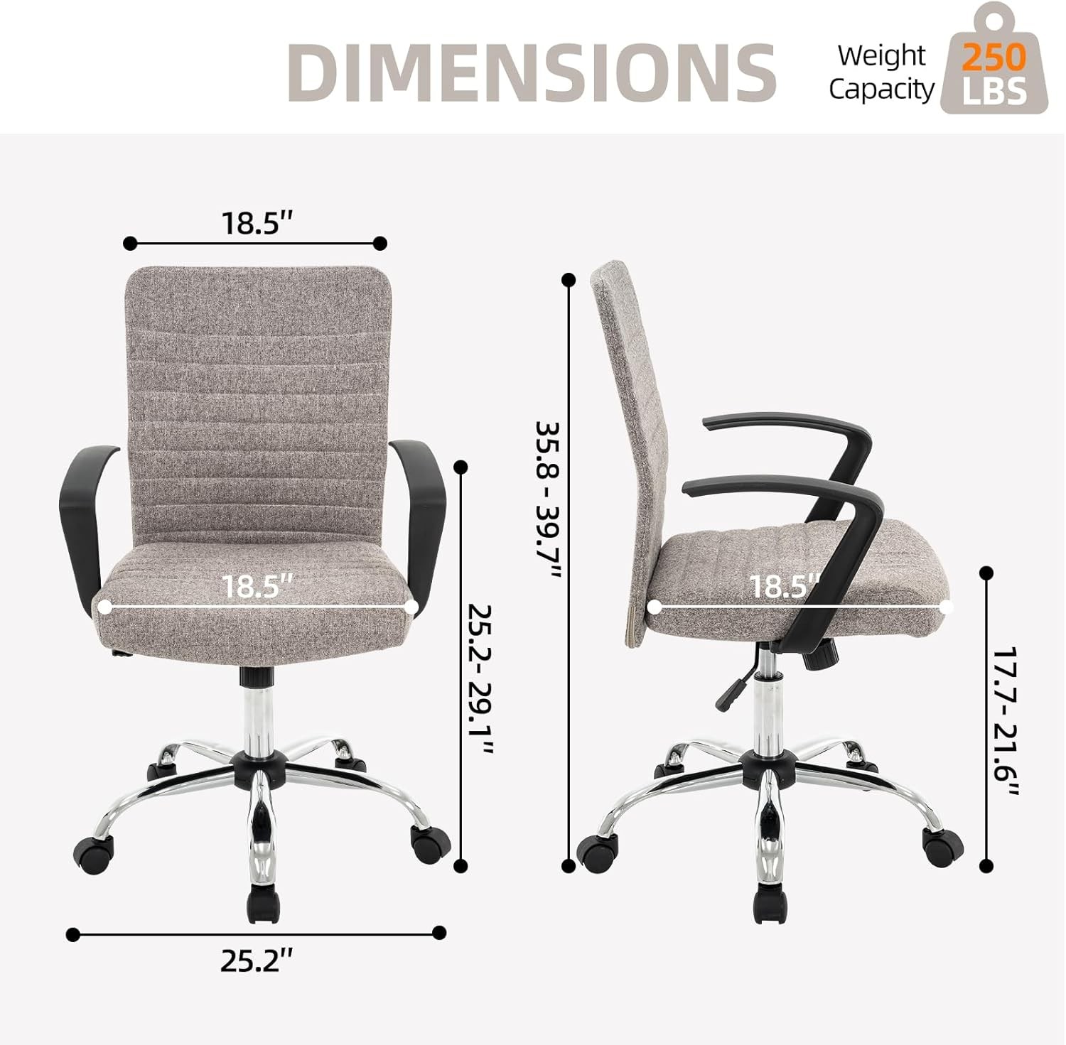 Free eBay listing template designed by dewiso.com 422 High Back Ribbed Office Chair Ergonomically Designed with Armrest Executive Swivel Computer Chairs with Wheels for Conference Study Leisure(Light Grey) FREE AND FAST SHIPPING! About this item 【Modern Design】Integrating modern touch into its minimalist look, this desk chair for home office brings chic style to your room.Moreover, its Simple and atmospheric design dressed in various classic colors makes it go well with anything spaces like conference room, office home as well as reception room.It is a office chair born for both style and comfort 【Multi-function】Backrest rocking from 90° to 135°,finding the best spot for your posture;seat height adjustable from17.7''to 21.65'';mute wheel with 360°rotation,ensure smooth, comfortable, and peaceful traveling throughout the workspace and reducing scratches on your floor. These functions make it an ideal executive desk chair 【Linen Fabric with Stitched Ribbing】This chair was designed with your comfort in mind,made of soft linen fabric.High density foam cushion provide a comfortable and supportive seating experience. This high back chair can be perfectly consistent with your back that provide exceptional durability and comfort for your back.Linen fabric covered ribbed backrest and seat combined with chrome finish metal frame,It's a perfect, classic design 【Durable Construction】The office chairs use BIFMA-rated Class 4 lifts that are the most durable in the industry, ensuring trouble-free raising and lowering.Solid frame, Sturdy five-point base make chairs can hold up to 250 lbs 【Easy to Assemble】Needs 15 minutes to finish assembly according to installation instructions, all parts and instructions included.We provide friendly after-sales customer service,if there are problems such as missing parts, product damage, or other unsatisfactory issues, please feel free to contact us, our dedicated team responds within 24 hours.Thank you for choosing 422 office chair,we will be responsible for your choice. Show more Product We offer a 30-Day Return Policy on items which you are not completely satisfied with. You have the option for a full-refund or an exchange of the item. No returns are available on items shipped outside of the US . Shipping We offer Free Shipping to the US and ship within 2 business days of payment, usually sooner. We use UPS express shipping. That's why your products are usually delivered within 3 days . Contact We try our very best to make sure every customer is completely satisfied. If there's a problem , message us! We're happy to help. 24/7 live chat available.