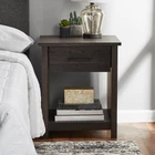 Give your bedroom a fresh look when you add the charming and functional design of this 1-drawer nightstand from the Hillside collection. This bedside table with storage offers a spacious top surface to set items like your alarm clock, table lamp, coasters, and smartphone. This nightstand with open storage includes a spacious drawer that provides easy access to remotes, your favorite book, and reading glasses. This nightstand with drawer is also compatible with bins to turn the open storage component into additional hidden storage. Even without a fabric bin, this nightstand with open storage can stash small pillows, stacks of books, or any decorative item you wish to put on display. A bedroom nightstand doesn't have to be hard to find. Finished in Espresso, combining style and function is what makes the Hillside single drawer nightstand a stand-out from others. Assembled Dimensions: 19.88" L x 17.64" W x 23.9" H Drawer and open storage Espresso finish Assembly Required Model #: 431314 Box Dimensions: 27.28" L x 20.55" W x 4.80" H For additional questions or any issues, please contact the manufacturer at 1-800-523-3987 Be sure to check out the Hillside collection for more great items!