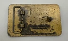 This vintage brass belt buckle features a unique design with the words "Your Health Counselor From The Hog Belt" and a picture of a hog. It is made by Salsbury Laboratories and has an Art Deco style. The color of the buckle is bronze and it is original, not a reproduction. The material used is brass, which adds to its durability and long-lasting quality. The belt buckle is suitable for adults and is a great addition to any vintage accessories collection. Its exact decade of origin is unknown, but it has a timeless appeal that will never go out of style. This item would make a fantastic gift for anyone who appreciates vintage fashion or unique pieces of art.