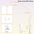 Hokone LED Desk Lamp with Clamp, 10W Gooseneck Lamps Touch Control,Swing Arm Clamp Lamp, Architect Clamp Desk Lamp Dimmable,Nail Lamp for Desk Table (White) Product Details Color: White Brand: Hokone MPN: Does not apply UPC: Does not apply EAN: Does not apply Finish Type: Painted Base Material: Plastic Product Dimensions: 3.35"D x 8.66"W x 27.56"H Item Weight: 0.91 Kilograms Lamp Type: Desk Lamp Product Dimensions : 3.35 x 8.66 x 27.56 inches; 2 Pounds Date First Available : May 20, 2021 Manufacturer : Hokone Country of Origin : China Customer Reviews: 4.6 4.6 out of 5 stars 526 ratings Finish Type: Painted Base Material: Plastic Product Dimensions: 3.35"D x 8.66"W x 27.56"H Item Weight: 0.91 Kilograms Lamp Type: Desk Lamp Shade Color: White Shade Material: Acrylonitrile Butadiene Styrene Switch Type: Touch Style: Modern Brand: Hokone Color: White Special Feature: Memory Function, 3 Color Modes, Adjustable Brightness, Corded, Eye Caring Light Source Type: LED Material: Silicone, Acrylonitrile Butadiene Styrene Room Type: Office Recommended Uses For Product: Reading Power Source: Corded Electric Shape: Oval Controller Type: touch Number of Light Sources: 10 Connectivity Technology: USB Included Components: Remote Control, LED Bulb, Power Cable Is Waterproof: false Bulb Shape Size: B10 Mounting Type: Tabletop Wattage: 10 watts Number of Items: 1 Lighting Method: Adjustable Control Method: Touch Indoor/Outdoor Usage: Indoor Specific Uses For Product: Indoor use only Water Resistance Level: Water Resistant Installation Type: Tabletop Number of Pieces: 1 Connectivity Protocol: Homeplug Efficiency: Energy Efficient Voltage: 120 Volts (AC) Is Cordless?: No Manufacturer: Hokone Item Weight: 2 pounds Country of Origin: China Finish types: Painted Special Features: Memory Function, 3 Color Modes, Adjustable Brightness, Corded, Eye Caring Batteries Required?: No Bulb Features: *Flexible Gooseneck *3 Color Temperature Dimmer *Dimmable *Strong Metal Clamp *Stepless Level Brightness *Sensitive Touch Control *Flicker-Free & Anti-Glare *Eye- Caring Date First Available: May 20, 2021 [ Sturdy Flexible Gooseneck Lamp ] Looking to upgrade your workspace with a reliable and adjustable desk lamp? Our Gooseneck desk lamps are the perfect solution for you! With its easy-to-adjust and flexible design, you can effortlessly position the light in any direction you desire, and maximizing productivity. Say goodbye to frustrating adjustments and hello to a comfortable and efficient workspace. [ Eye Caring & Large Lighting Area ] The office lamp adopts 90 high-efficiency LEDs that provide bright and soft light without any flicker, glare, or ghosting. With its wide and even light coverage, the study lamp can illuminate your entire desk, allowing you to work comfortably and effectively for hours on end. [ Adjustable Brightness and Color Temperature ] The desk light has 4 color modes (3000K-6000K) and 5 brightness levels, making it perfect for use at home, office, workbench, studio, or in an architect study. It can be easily adjust the brightness and color temperature with just a touch. [ Space Saving Clamp Design ] Clamp light has a powerful clamp with a silicone pad that securely attaches to desktops up to 2.83 inches thick, making it stand out from other lamps with only 2-inch clip-on thickness.The specialized design ensures excellent stability and prevents any damage or scratches to your tabletop. [ 100% Satisfaction ] Your satisfaction is our priority,if any issues please feel free to email us. Our team is very pleased to assist you to resolve any problems. Hokone is always there and be with you!