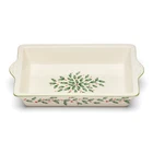 The Holiday Rectangular Baker allows for dishes to be prepared and served in the same platter, making holiday hosting a breeze. This ceramic dish features a holly motif and is ideal for casseroles. What's Included: One Baker Breakage Replacement Program Length: 13 inch Material: Ivory Porcelain Dishwasher and Microwave Safe Freezer to Oven to Table Imported