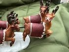 Vintage Reindeer Figurine Retro Style 9.5" BROWN Spotted Deer Glitter & Bell