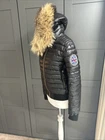 Holland Cooper coat Very good condition - bit bobbley on the bottom of the stretchy panels but not that bad, and rest of the coat is a lovely condition Size XS, fits a 6 nicely, should fit an 8 if you have small hips/waist, the stretchy bottom of the coat is the smallest part. Real fur, trim and also hood are removable