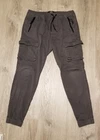 Elevate your travel or casual look with these Hollister Cargo Skinny Jogger Pants. These pants feature a drawstring closure and elastic waist for a comfortable fit. The cargo pockets provide ample storage space, making them perfect for on-the-go use. Crafted from a soft cotton blend knit fabric, these pants are machine washable and easy to care for. They come in a stylish gray color with a solid pattern and a flat front design. These pants have a high rise of greater than 12 inches and a skinny leg style with a 28-inch inseam. The Hollister logo accents and zipper details add a touch of preppy city style to the overall design.