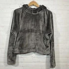 Hollister Hoodie Womens Size Small Gray Faux Fur Cropped Sweatshirt Sweater See measurements for accurate fit Pit to pit 20 inches Shoulder to hem 21 inches Measurements are done flat lay