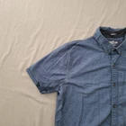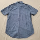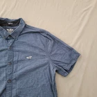 Collar Style: Button-Down Size Type: Regular Fabric Type: Woven Pattern: Solid Occasion: Casual Neckline: Collared Color: Blue Department: Men Type: Button-Up Fit: Slim Material: Cotton Sleeve Length: Short Sleeve Features: Stretch Size: M Closure: Button Accents: Button Theme: Classic Brand: Hollister