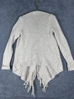 This Hollister sweater is perfect for any casual occasion, with its open front neckline and long sleeves. The fringe accents add a touch of bohemian flair, while the solid pattern makes it versatile for any outfit. It is made from a wool blend, cotton, and acrylic, and is perfect for hand wash only. This sweater is a size medium and has a regular fit, making it a great addition to any wardrobe.