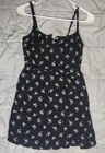 This Hollister women's dress is perfect for any occasion, whether it's a casual day out or a special event. The dress features a beautiful floral pattern in shades of blue and white, with spaghetti straps and a scoop neckline. It's made of lightweight knit fabric that's comfortable and stretchy, and has adjustable straps for a perfect fit. The dress is machine washable and easy to care for, making it a practical choice for any wardrobe. It's available in size M and fits regular size women. Whether you're going to a party, a holy communion, or just running errands, this dress is a versatile and stylish choice. This is in good condition and it's made from 100% viscose. The bust measures at 14 1/2', length is 26', and width is 29'.