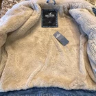 This is an absolutely adorable little jacket by Hollister. Women’s size small denim jacket has a faux collar cuffs in lining. Coat is brand new with tags attached.