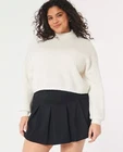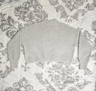 Introducing a stylish and versatile Hollister sweater, perfect for any occasion. Featuring a mock neck and waffle-knit design, this lightweight and breathable sweater is made of a comfortable blend of polyester, elastane, and recycled polyester. The long regular sleeves and collarless design make it suitable for all seasons, whether you're traveling, attending a party, or just running errands. This gray sweater is available in size small and is machine washable for easy care. It's a great addition to any wardrobe, with its solid pattern and casual theme. Made in Cambodia, this sweater is a must-have for any fashion-conscious woman who wants to stay comfortable and stylish. This has only been worn once so it's in great condition. It's made from 73% polyester, 25% recycled polyester, and 2% elastane. The bust measures at 24', sleeve length is 32', length is 19', and width is 48'.