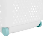 Product details Tilt & Roll, Lift & Go! This rolling laundry hamper from Home Logic is an ideal solution to easily transport your laundry anywhere you need. The built-in wheels and a Pop-up handle bar makes any laundry day a breeze. The large capacity laundry basket can hold loads of clothes for your convenience. Comfortably travel throughout your home or across the hallway to the laundry room with this rolling hamper. The rolling laundry basket is perfect for busy family and college life. The ease of use makes this a college dorm room essential. It can also help you maneuver around a laundromat. Put less effort into your laundry routine with this rolling hamper that doubles as a mobile laundry basket. The rolling hamper is also a great use for garage storage. Use it to store your sports gear, toys, or gardening supplies which are ready to roll out when you are! Large, narrow hamper on wheels Built-in wide handle Large load capacity (2.0-bu)