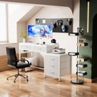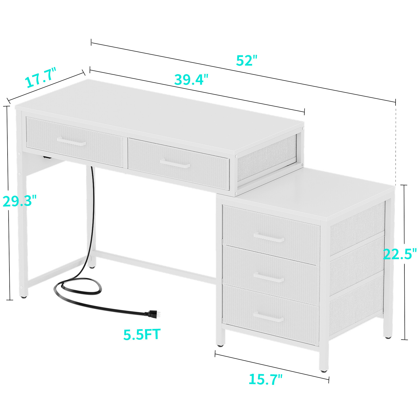 Product Description Reversible Computer Desk - You can switch if you want the drawers on the left or right which can fit well in small space or large space. Whether you prefer trying different configuration before setting things in place for good or just enjoying a periodic switch up, changeability is at your fingertips. This piece is made with versatility in mind so you can roll with the punches and use it in the way that best suits the moment. Whether you need more space for making up and home office work or you want to add some extra storage, this desk has it all. With functional and sleek design, the desk with drawer creates a very aesthetic look for any room in your home office. It features 5 storage fabric drawers with lots of storage, which have plenty of room for files, mails, pens, headphones, routers, controllers etc. Saves from cluttering up the top of desk. The desk is a nice option to anyone wanting a compact computer desk or vanity. it can fit in your room with limited space perfectly. Versatility 5 Fabric Drawers The reversible drawers are convenient, roomy and handy as well. The drawers have plenty of room for desk essentials & mail. Printer Stand The side printer stand can hold printer and paperwork etc. Vanity You can use it as a vanity and put an oval mirror above it. Highlights Substantial Storage Space Reversible Design 3 Power Outlet and 2 USB Charging Ports Sturdy and Stable Easy to Assemble You will get a power strip with 3 power outlets and 2 fast charging USB ports for your office gadgets. It really comes in handy for daily use. If you're planning on getting an computer desk, a workstation, or one of the makeup desk, this should certainly be the best bang for the buck. It is time to give your home and office a multifunctional and nice look corner desk it deserves. Plenty of space and Space-Saving The writing desk features 5 fabric drawers with roomy compartments to offer extra storage space for books, artworks, magazines, office essentials and hosts, so that your desk is not cluttered with office supplies. You can chosse which side you want to place and build the cabinet. The large desktop can support multiple monitors, printer, scanner, other equipments. You can able to use free space to work more effectively. Multipurpose The reversible design means it can fits into almost any space and have desk space at both sides for productivity. This desk can sit in a corner, large home office or smaller work nooks as a computer desk, office desk, vanity desk, gaming desk, study desk, writing desk with ample desktop and large storage space. It also can add vitality and style to your workstation and make your room cozy and complete. Sturdy and Easy to Assemble With solid construction, this L shaped office desk is very sturdy, besides, the step by step instructions is easy to follow. Please read the instruction carefully during installation. Color Options: Black, Rustic Brown, White, Black Oak