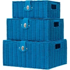 Homepeaz Set of 3 Woven Wicker Storage Basket Box with Lid & Lock, Built-in Carry Handles, Multifunctional Storage Organiser for Nursery, Baby, Clothes, Toys, Books, Large/Medium/Small Size (Sky Blue) đăDecorative hand-woven basketăHomepeaz's storage baskets are crafted from plastic imitation rattan and woven with a classic and attractive design.the material and color restored the texture of the wicker and rattan very realistically, giving it a neutral look that can blend in with a variety of aesthetics. By placing these rectangle baskets in your rome or patio, you can feel the earthy odor as they will delight your corner in many rustic and vintage styles, very sweet baskets. đăPremuim Material and Strong Frameă Homepeaz's baskets are woven by plastic imitation and the surface is soft, smooth and waterproof, which perfectly retains the texture of wicker rattan and makes these baskets very easy to clean. perfect storage solution for your bathroom or dressing room, makeups, accessories, and more. Made of sturdy metal frame, durable and long lasting, it ensures your belongings remain protected and the box remains at its full dimensional capacity. You cannot miss it! đăLeather Look Strap Lock and Insert Nesting HandlesăThis is amazing design, The fashionable, chic woven style of the hamper boxes mean that organising your belongings doesnât have to be an ugly feat, with a leather-look strap and metal lock for that sleek, quality feel.The boxes Builded in handles nesting for convenient storage and lightweight allow easy to carry.It fits in with any decor, also that they stack on top of each other in different sizes and the leather look strap for closure. đăAll-Occasion StorageăAvailable in a versatile grey / black / white, the woven baskets are suitable for use in a variety of rooms in your home, Waterproof and very easy to clean, securely storing anything from kidâs toys to food, books or bathroom toiletries, bedroom or kitchen, kitchen, living room and patio. With three different large/medium/small sizes, you can use in stylish stacked form or as storage in different rooms around the house. Shipping We offer FREE shipping on all orders! We use a selection of shipping services such as UPS, FedEx, USPS etc. We only ship to the lower 48 states, no APO/FPO addresses or PO Boxes allowed. Local pickups and combined shipping options are not provided at this time. Return You can return a product for up to 30 days from the date you purchased it. Any product you return must be in the same condition you received it and in the original packaging. Please keep the receipt. Payment We accept payment by any of the following methods: PayPal Please pay as soon as possible after winning an auction, as that will allow us to post your item to you sooner! Feedback Customer satisfaction is very important to us. If you have any problem with your order, please contact us and we will do our best to make you satisfied. Contact Us If you have any queries, please contact us via ebay. We usually respond within 24 hours on weekdays. Please visit our eBay store to check out other items for sale! Thank you for shopping at our store.