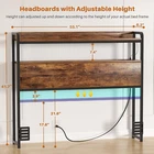Product Description Advantages: Built-in Power Hub Within Arm's Reach - Say goodbye to tangled cords! Our headboard boasts 3 outlets & 2 USB ports for easy charging of your phone, gadgets, and more. No more hunting for chargers. Everything you need is right by your bedside. LED Magic for Your Sleep Haven: - Dive into a world of color with over 60,000 hues and dynamic flashing modes. - Sync the lights to your music's beat or set a timer for the perfect ambiance. - Customize the colors to match your room's vibe using the remote or our handy app. Headboard with Led Light. Level up your romantic evening, cozy get-together, or movie night with the enchanting LED light display. Immerse yourself in a spectrum of 60,000 colors, synchronize with your favorite tunes, and effortlessly revamp your surroundings. Features: Spacious Storage and Stylish Design. - Our headboard rocks a retro wood and iron frame, blending practicality with elegance. - Two-tier shelves keep your essentials organized – phones, glasses, and even a mini projector for movie nights. Elevate your bedroom's style instantly with our chic and functional design. Bed Frame Adapter Included. The adjusting plate can be adjusted freely, and connected flexibly when the installation distance between the headboard bracket and the bed frame is too large or too small.