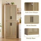 Pantry - Kitchen Pantry Cabinet, Rattan Cabinet with 4 Doors and Adjustable Shelves, Tall Black Cabinet Freestanding Storage Cupboard for Dining Room Living Room, Laundry, Bathroom MULTI-FUNCTIONAL PANTRY CABINET - This Storage Cabinet Can be Use as A Pantry Cabinet, Kitchen Cabinet, Bathroom Cabinet, Craft Cabinet, Living Room Cabinet, Laundry Room Cabinets, Accent Cabinet, Towel Cabinet, Buffet Sideboard, Office Storage Cabinet and so on, This Standing Pantry Cabinet Creates Functional Kitchen, Bathroom, Laundry or Utility Room Storage Options, This Storage Cabinet is Sutible for Any Space in Your Home that Needs Storage to Keep Your Home Neat and Tidy FLEXIBLE & SPACIOUS STORAGE - This Tall Rattan Storage Cabinet With 4 Doors And Adjustable Shelves Provide Large Storage Space for Your Kitchen and Dining Room, The Shelf Offering 3 Height Options, Thanks To The Adjustable Shelf Design, You Can Customize The Storage To Meet Your Specific Needs, Versatile Cupboard For Storing Canned Foods, Storage Containers, Pet Supplies, Cleaning Items, Books, Towels, Linen And Cosmetics, Shower Items, And More With This Sturdy Cabinet This Kitchen Pantry Cabinet Is Crafted From Quality Mdf And Quality Soft Close Door Hinges, Our Pantry Cabinet Ensures Stability And Durability For Long-Term Use. For Added Safety, Comes With Anti-Tip Kit, Providing A Secure Living Space, Elevate Your Storage Solutions With This Stable, Durable, And Stylish Pantry Cabinet MODERN STORAGE CABINET - This Pantry Cabinet With Doors And Shelves Features A Modern, Sleek Design With Farmhouse Rattan Decor And Black Metal Handles, It'S Not Only A Piece Of Furniture, But Also A Great Decor For Your Home, Enhancing The Aesthetic Of Any Room, This Rattan Cabinet Is Great For Bathroom, Living Room, Kitchen, Diningroom, Sewing Room, laundry room, Etc. MULTI-FUNCTIONAL PANTRY CABINET: This Storage Cabinet Can be Use as A Pantry Cabinet, Kitchen Cabinet, Bathroom Cabinet, Craft Cabinet, Living Room Cabinet, Laundry Room Cabinets, Accent Cabinet, Towel Cabinet, Buffet Sideboard, Office Storage Cabinet and so on, This Standing Pantry Cabinet Creates Functional Kitchen, Bathroom, Laundry or Utility Room Storage Options, This Rattan Storage Cabinet is Sutible for Any Space in Your Home that Needs Storage to Keep Your Home Neat and Tidy FLEXIBLE AND SPACIOUS STORAGE: This Tall Storage Cabinet With 4 Doors And Adjustable Shelves Provide Large Storage Space for Your Kitchen and Dining Room, Thanks To The Adjustable Shelf Design, The Shelf Offering 3 Height Options, You Can Customize The Storage To Meet Your Specific Needs, Versatile Cupboard For Storing Canned Foods, Storage Containers, Pet Supplies, Cleaning Items, Books, Towels, Linen And Cosmetics, Shower Items, And More With This Sturdy Cabinet MODERN RATTAN CABINET: This Pantry Cabinet With Doors And Shelves Features A Modern, Sleek Design With Stylish Decorative Rattan Panels And Black Metal Handles, It'S Not Only A Piece Of Furniture, But Also A Great Decor For Your Home, Enhancing The Aesthetic Of Any Room, This Rattan Storage Cabinet Is Great For Bathroom, Living Room, Kitchen, Diningroom, Sewing Room, laundry room, Etc. STURDY AND DURABLE: This Kitchen Pantry Cabinet Is Crafted From Quality MDF Board, Soft Close Door Hinges and Metal Handles, Our Pantry Cabinet Ensures Stability And Durability For Long-Term Use. For Added Safety, Comes With Anti-Tip Kit, Providing A Secure Living Space, Elevate Your Storage Solutions With This Stable, Durable, And Stylish Pantry Cabinet VERY EASY TO PUT TOGETHER: The Kitchen Cabinet Is Easy To Assemble, The Instructions Are Easy To Follow And All The Hardware Is Included, Just Take About Half Hour, A New Pantry Cabinet Is Ready to Use, Also, It Is Not Too Heavy Once Assembled, So It Can Easily Be Moved Into Position