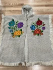 Hooded Poncho Cape Embroidered Floral Women One Sz Made In Mexico