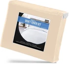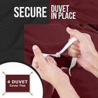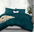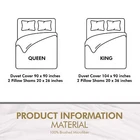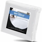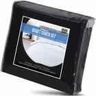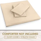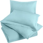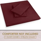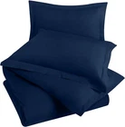 About this item Microfiber DUVET COVER SET - Includes a TWIN duvet cover measuring 68 by 90 inches with a zippered closure, 1 pillow case (shams) measuring 20 by 26 inches with a 2 inches flange which adds classic decorative accent to the pillow shams (COMFORTER SOLD SEPARATELY). - Includes a duvet cover FULL measuring 80 by 90 inches with a zippered closure, 2 pillow cases (shams) measuring 20 by 26 inches with a 2 inches flange which adds classic decorative accent to the pillow shams (COMFORTER SOLD SEPARATELY). - Includes a duvet cover QUEEN measuring 90 by 90 inches with a zippered closure, 2 pillow cases (shams) measuring 20 by 26 inches with a 2 inches flange which adds classic decorative accent to the pillow shams (COMFORTER SOLD SEPARATELY). - Includes a duvet cover KING measuring 104 by 90 inches with a zippered closure, 2 pillow cases (shams) measuring 20 by 36 inches with a 2 inches flange which adds classic decorative accent to the pillow shams (COMFORTER SOLD SEPARATELY). - Includes a California king duvet cover measuring 104 by 98 inches with a zippered closure, 2 pillow cases (shams) measuring 20 by 36 inches with a 2 inches flange which adds classic decorative accent to the pillow shams (COMFORTER SOLD SEPARATELY). BRUSHED MICROFIBER POLYESTER- The brushed microfiber polyester fabric makes them soft, breathable, iron easy, wrinkle free and fade resistant and protects against any shrinkage after washing DURABLE - The high tensile strength makes it strong, durable and less likely to rip or tear PERFECTLY SEWN CLOSURE - The closure is sewn to perfection to secure the comforter in place EASY CARE - Machine wash with like colors and tumble dry on low heat; (CLOSE ZIPPER COMPLETELY WHEN WASHING TO SECURE TIE KNOT) Product Description Complete Duvet Set Bring a luxurious feel to your bed with this solid-color microfiber duvet set. Featuring a plain weave, this solid duvet set coordinate effortlessly with your existing bedding set. Each set contains a duvet cover with hidden zippered closure and two pillowcases. Now you can conveniently buy basic bedding in a single package rather than purchasing each item separately. It is often less costly to buy a duvet set than to buy everything separately. Soft and Breathable Fabric Our classic 3 piece Duvet set is designed with your comfort in mind. Made of finest brushed microfiber yarns, this set creates a new standard in softness and breathability that makes it really hard to get out of bed in the morning. Wrinkle and Stain Resistant Our duvet set has strong and durable fabric that maintains brightness and shape to ensure a finished look for your bed room and a blissful night's sleep. The tight weave of microfiber allows any liquids to bead up and sit on the surface of the fabric for a short time instead of soaking immediately. This makes it highly strain resistant. If you can clean up the liquid before it soaks into the fabric, it will be as if nothing ever spilled on your furniture. Hidden Zipper Closure & Tie Backs Our duvet set features hidden Zipper closure and a tieback at each corner to neatly secure the comforter inside the duvet. This ensures that your comforter stays in place all the time. Care Instructions WASHING: Ordinary washers and dryers can be used for easy care and washing of this set. Hand or machine wash in cold water with light detergent. Washing at high temperature makes the microfibers expand, If you hand wash use a soft bristled brush if necessary – rinse thoroughly. DRYING: Air dry is best for drying since microfiber dries relatively quickly. However, if you plan to use the dryer, set it on low heat or no heat. This setting uses less quantity of water for laundering, less percentage of chemicals and consume less energy for drying. Besides this, it is preshrunk to avoid any shrinkage after washing. CLEANING: Do not use fabric softeners as they clog the open spaces in microfiber making the fabric useless. Also, do not wash microfiber with terry towel or material that shed a lot of lint. Wash them separately or with material like jeans or t-shirt that do not shed lint.