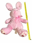 Hugfun pink soft bunny with floppy ears and pink bow- used good condition. Item will ship via USPS Ground Advantage Mail.