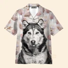 Husky Terrier Mens 3D Hawaiian Shirt Husky Button Up Shirt