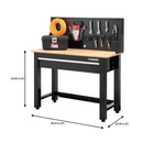 4 Ft. Solid Wood Top Workbench In Black With Pegboard And 1 Drawer Store New Arrivals Add to Saved Sellers View Feedback Contact 4 Ft. Solid Wood Top Workbench In Black With Pegboard And 1 Drawer Includes a durable wood platform, drawer and pegboard Crafted to withstand extreme temperatures and high humidity Great for garages, basements and workshops Give your space more 4 ft. Solid Wood Top Workbench in Black with Pegboard and One Drawer. It ft. s simple to set up in your garage or workspace. The necessary tools for assembly are included. It is resistant to extreme temperatures and humidity. Adjustable Workbench Height: Non-Adjustable Assembly Required: Yes Assembly Type: Full Assembly Required Color Family: Black Features: With Drawers Frame Material: Steel Included: Hardware Number of Drawers: 1 Drawer Product Weight (lb.): 89 lb Style: Modern Weight Capacity (lb.): 1675 lb Assembled Depth (in.): 20.27 in Assembled Height (in.): 52.87 in Assembled Width (in.): 48 in ABOUT US Customer service is our top priority! Please be sure to read the description thoroughly to make sure that this is the item you want before making a purchasing decision. If you have any questions about this item, please contact us via eBay messages before placing your order. We make every effort possible to accurately describe and depict the items. Please be aware that slight variations in color may be due to differences in lighting and computer monitor resolutions. All items are in stock at the time of listing; however, in the unlikely and unforeseen event that we are unable to fulfill your order through any of our networked warehouses, we will notify you as quickly as possible and offer you a 100% refund on your purchase. Thank you for shopping with us. We appreciate your business! SHIPPING We provide fast, free shipping. Most items are shipped within 3-5 business days of receiving cleared payment. We ship to the lower 48 contiguous United States only. We do not ship to P.O. Boxes or APOs. For select items, we ship internationally through eBays Global Shipping Program. We do ship most of our smaller items internationally using eBays Global Shipping Program. If ordering electrical items outside of the U.S., please note that they will come equipped with a standard U.S. voltage plugs. You will need a suitable adapter to use the item in your country. Certain restrictions apply. Standard or Economy Shipping is ALWAYS FREE! You will be notified via eBay messages as soon as your items ship. Special Notice for Freight Items: If an item ships via Freight (Truck) Delivery, a valid phone number will be required so that we can contact you to schedule delivery. The item may be delivered with curbside delivery. An adult signature will be required. Please be sure to have available help on hand to assist you with moving the item to the desired location in or outside of your home. Freight items must be inspected upon delivery. In the unlikely event that damage is observed, you MUST refuse delivery and note the damage on the shipping receipt and send it back via the Freight carrier. Returns will not be accepted on Freight items after they have been delivered, inspected, and the driver has left the premises. RETURNS When returning an item, it must be in all of the original packaging and include all of the original accessories or items that came with it. The item and package should be in original and perfect condition. You will be required to cover shipping on the return of non-defective items. All returns MUST be done within 30 days of date of purchase. Please note that we cannot give refunds or replacements after the 30 day limit has expired. When sending in a return, please note that it can take up to 7 business days for the return to be processed. We do our best to process as quickly as possible. We are extremely fair, and in the rare event of something out of the ordinary happening with our products or shipping, we will gladly work with you to find a fair resolution. PAYMENT We accept all of the standard payment options offered at eBay checkout. To provide a safe experience, eBay only allow payment methods that offer strong protection for buyers and sellers. Your order will be processed pending receipt of cleared payment. Sales tax may be charged depending on your location. DISCLAIMER We are sorry, but we do not honor product exchange requests. If you need to exchange an item received, you will need to go through the normal returns process identified in our returns section and then order the correct item, if it is still available. Orders are processed immediately and dispatched to fulfillment as soon as they are received. For this reason, we are typically unable to honor cancellation requests. If you need to cancel the transaction, please contact us as soon as possible and we will attempt to cancel the order. If the order has gone too far through the fulfillment process, we will be unable to cancel. In that event, you would need to wait until you receive the item and go through the normal returns process as mentioned in the returns section of our policies. Please note that electronic items are only rated for use inside the United States. If you order an electronic item for use outside the USA, that is at your own risk. If the product gets damaged or does not work, you will be liable and we will not accept a return of the item CUSTOMER SATISFACTION We try our very best to make sure every customer is completely satisfied. If there's a problem, message us! We're happy to help. © navonk69. | All Rights Reserved
