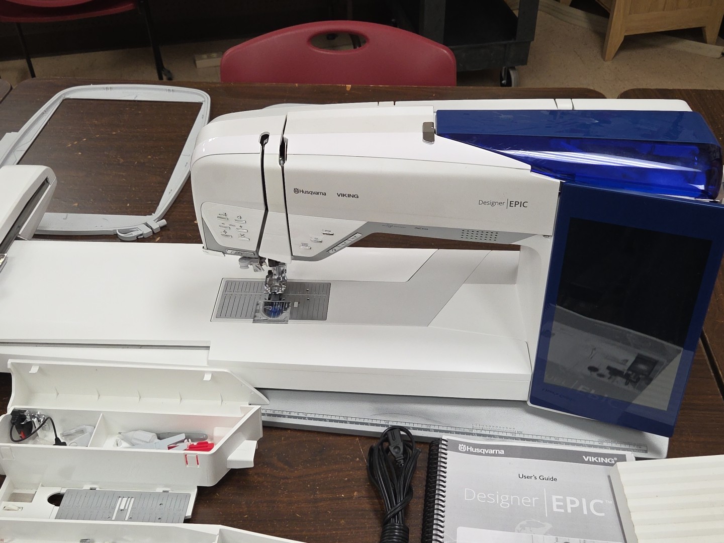 The Husqvarna Viking Designer Epic 1 Sewing and Embroidery Machine is a top-of-the-line household sewing machine suitable for a variety of projects, including embroidery, vinyl, quilting, leather, denim, and wool. It features bobbin-winding capabilities, portability, and the ability to create buttonhole-stitches, all with its computerized operation. This machine is designed by the reputable brand Husqvarna and is ideal for both beginners and experienced sewers looking to expand their crafting projects with precision and ease. Professionally serviced. Includes carry case for Embroidery Module, and dust cover for sewing machine. Great sewing machine. Shipping will be in 2 boxes. One for machine, one for module.