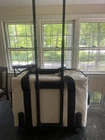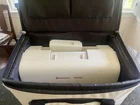 Husqvarna Quilter sewing machine with carrying case, carrying binder with 18 specialty feet plus original manuals, foot pedal, chords, digital controls, tools and thread. See pictures! Perfect condition! Amazing machine with quilting computer and digital cards for patterns and stitchery. Barely used! Amazing complete sewing set up!